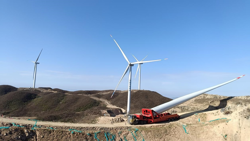 本项目位于湖南省邵阳市绥宁县河口苗族乡等多地,为山地风电项目。业主单位是海南金盘技能科技股份有限公司。风机机型为明阳6.25MW机型,共计16台,叶片长度为108米。此项目中我公司承接所有场外道路改造以及大件设备运输。道路改造范围由厂家到项目上山口,其中包括收费站改造和堆场租赁及改造。我公司承担机舱、轮毂、传动链、塔筒及叶片长途运输及转运,货物为机位车板交货。其中上山过程中牵引由我公司自行负责。大件设备从绥宁收费站下高速,堆场至分界点距离为18公里,分界点至最远机位平均为16公里。